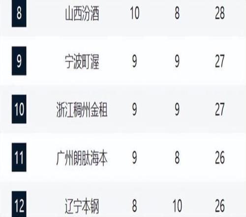 9-12分别是宁波、浙江、广州和辽宁。其中浙江和辽宁全部都遭遇连败,特别是辽宁已经跌到第12,这样的排名就非常危险了。广州则两连胜,随着郭艾伦的回归,实力继续提升,宁波之前三连败,这轮击败青岛,足够惊喜了。