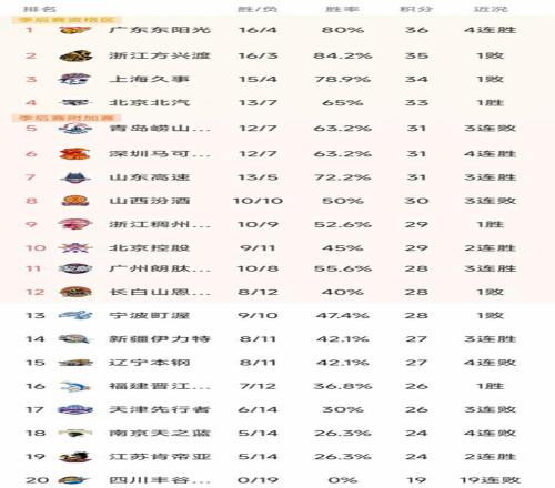CBA最新积分榜:广东4连胜升第1,北京1分险胜,山西3连败排第8